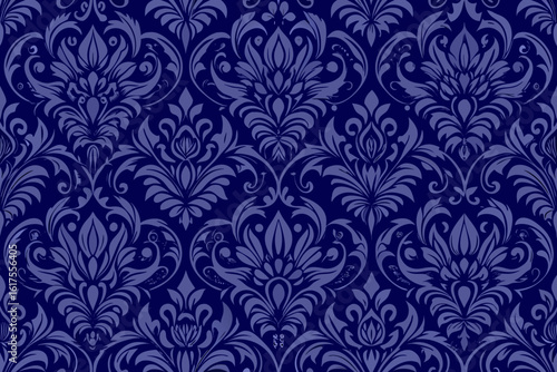 Vector illustration dark blue fabric texture seamlessly damask wallpaper pattern backgrounds for Fashionable modern wallpaper or textiles, book covers,seamless, pattern, vector, background, damask,