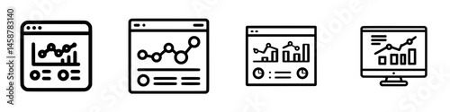 Vector illustration depicting multiple desktop web interface designs showcasing data analytics and graphical metrics in a professional setting