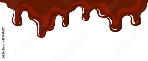 Vector illustration dripping melted brown chocolate. Isolated on white background.