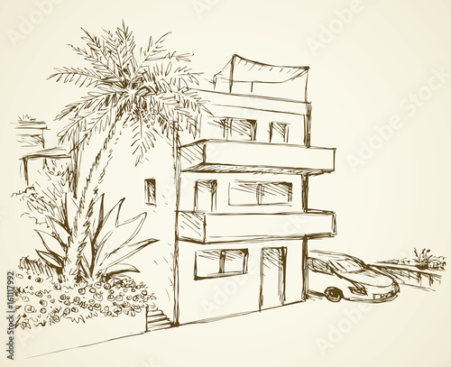 Vector illustration. East house patio