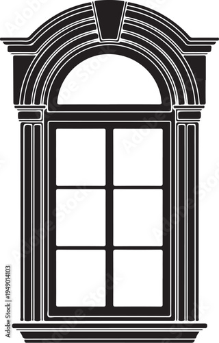 Vector illustration of a black and white arched window