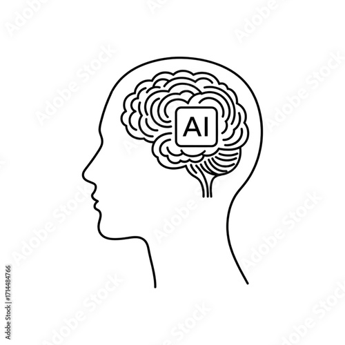 Vector Illustration of a Human Head Silhouette with Brain Featuring an AI Logo, Representing Artificial Intelligence and Digital Innovation