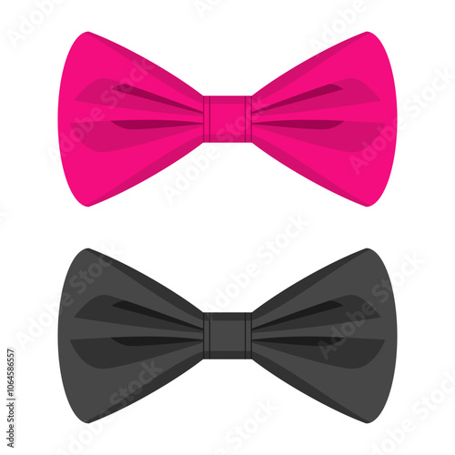 Vector illustration of a pink and black bow tie, isolated on a white background. A clothing accessory that makes a man look more elegant