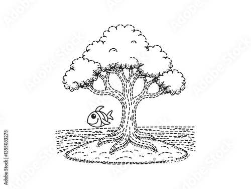 Vector illustration of a tree with leaves and branches, eco-friendly design, nature symbol, and floral elements