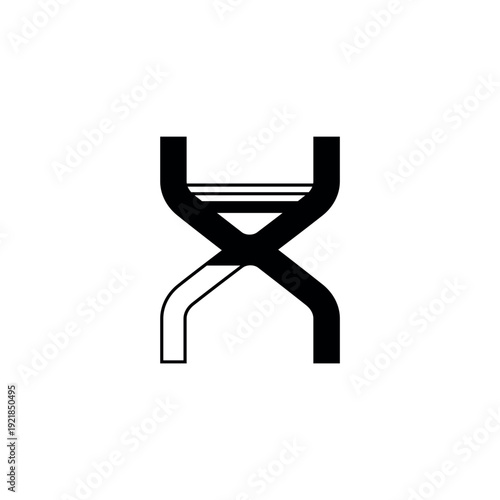 Vector illustration of an abstract linear capital letter X, composed of one solid black diagonal and one outlined diagonal. Unique geometric alphabet character. Isolated object on white background.