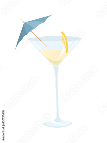 Vector illustration of an isolated cocktail glass with an umbrella and a lemon slice
