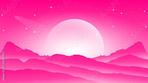 Vector illustration of beautiful mountain landscape, mountain landscape with fog, mountain walpaper for dekstop, pink walpaper