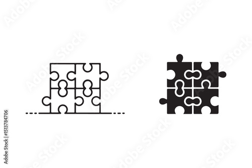 Vector illustration of connected puzzle pieces, representing teamwork and unity.