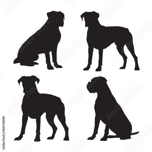 Vector illustration of dog boxer silhouette set, Black & White silhouette set
