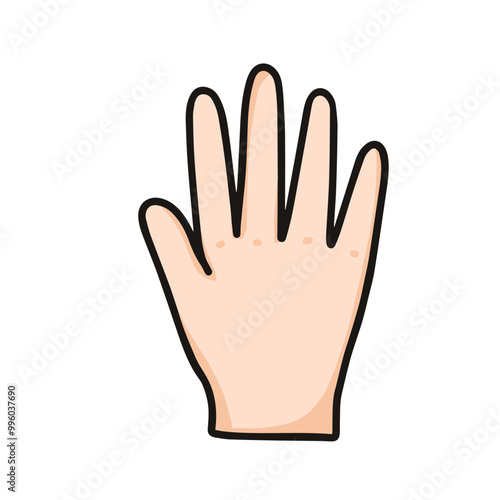 vector illustration of hand showing number five, hello gesture, raising hand, isolated on white background