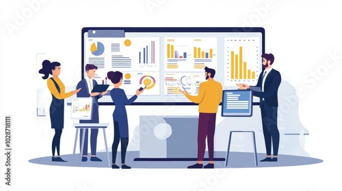 Vector illustration of office people: Digital marketing flat design concept, usiness analysis, content strategy and management