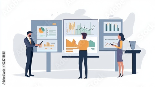 Vector illustration of office people: Planning digital strategies and optimizing content creation