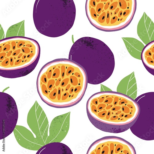 Vector illustration of passion fruit. Hand drawn vector with print passion fruit. Fresh juicy summer print.