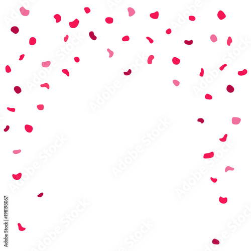 Vector illustration of pink and red rose petals raining down isolated on white background