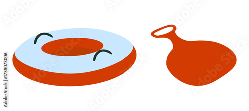 Vector illustration of sleds for winter walks and childrens games. Winter season, means of transportation on snow. Tubing. Red and blue color. Flat design. Isolated on white background.