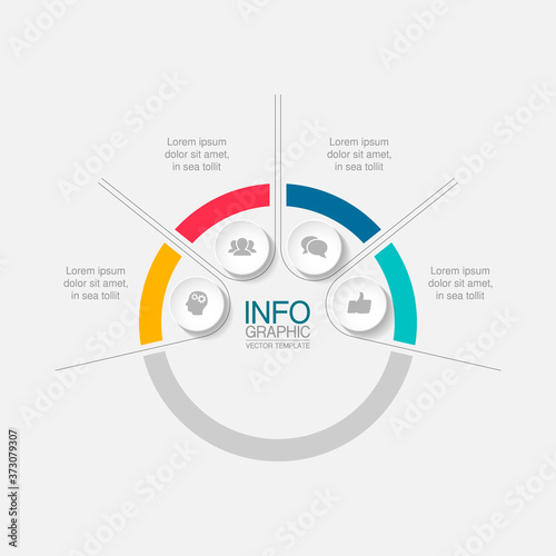 Vector infographic template, circle with 4 steps or options. Data presentation, business concept design for web, brochure, diagram.