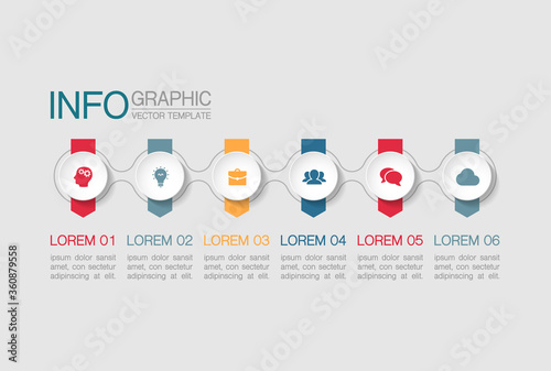 Vector infographic template with 6 steps or options. Data presentation, business concept design for web, brochure, diagram.