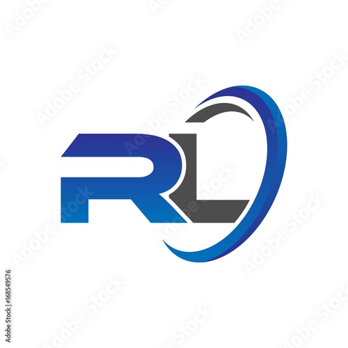 vector initial logo letters rl with circle swoosh blue gray