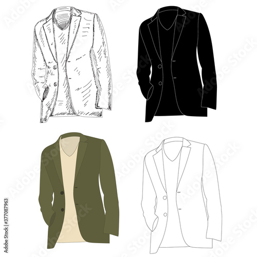 vector, isolated, hand-drawn sketch of men's jacket, silhouette