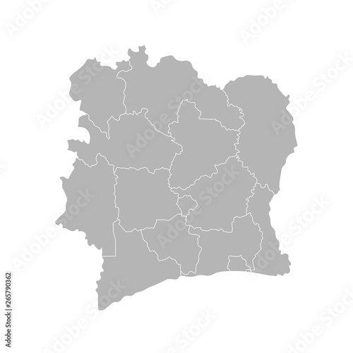 Vector isolated illustration of simplified administrative map Ivory Coast (Cote d'Ivoire). Borders of the counties. Grey silhouettes and white outline.