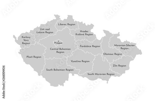 Vector isolated illustration of simplified administrative map of Czech Republic. Grey silhouettes, white outline