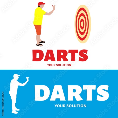 Vector logo Darts. A man throws a dart at a target