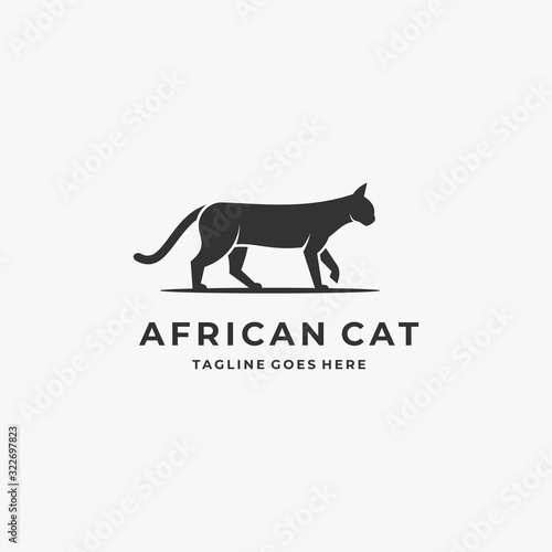 Vector Logo Design African Cat Walking Silhouette Style