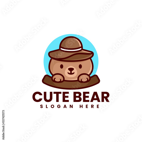 Vector Logo Illustration Cute Bear Mascot Cartoon Style.