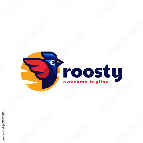 Vector Logo Illustration Rooster Simple Mascot Style.