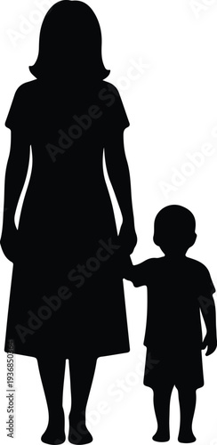Vector mother and child holding hands together family love care silhouette design