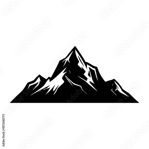 Vector mountain landscape with snow capped peaks and sunset silhouette