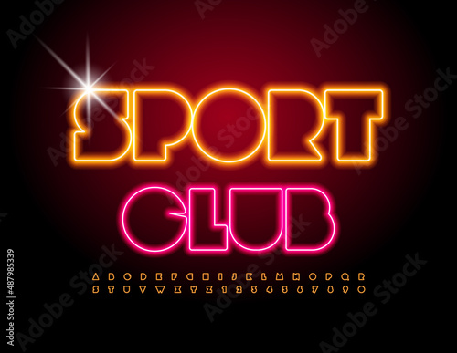 Vector neon Sign Sport Club. Modern Glowing Font. Creative Alphabet Letters and Numbers set
