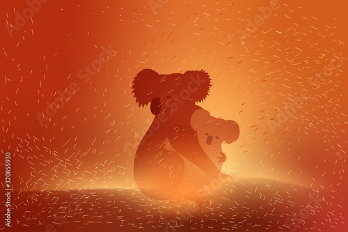vector of Koala bear family embracing in the wild fire pray for australia concept