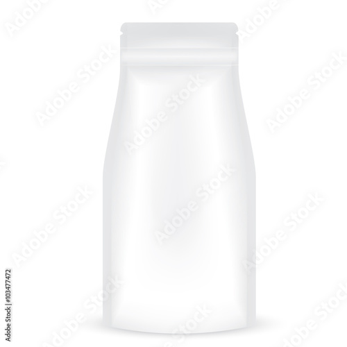VECTOR PACKAGING: White gray resealable storage packaging bag on isolated white background. Mock-up template ready for design