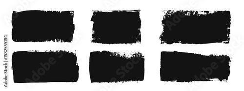 Vector paint bold brush strokes. Ink black hand drawn thick, thin grunge lines abstract shapes, smears. Overlay, textures, brushes design.