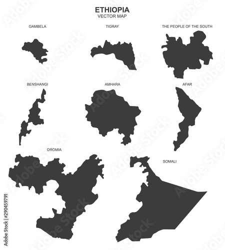 vector political map of Ethiopia on white background
