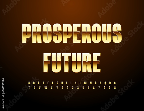 Vector premium icon Prosperous Future. Elite Gold Font. Luxury style Alphabet Letters and Numbers set.