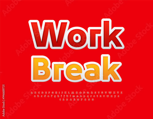 Vector professional sign Work Break. Bright Alphabet Letters and Numbers set. Red creative Font