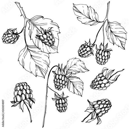 Vector Raspberry healthy food isolated. Black and white engraved ink art. Isolated berries illustration element.