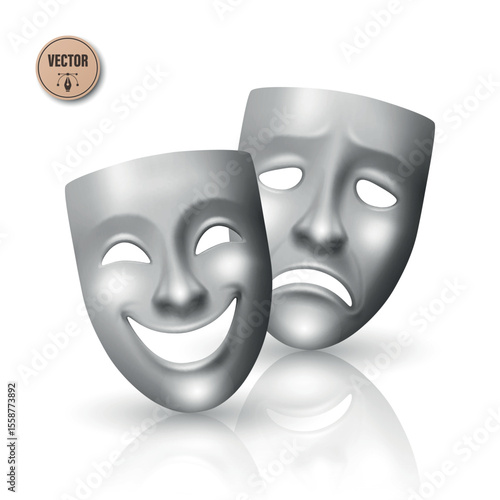 Vector Realistic Theater Mask Set. Comedy and Tragedy Masks. Classic Theater Mask for Stage Design, Greek Drama, Acting, Performing Arts. Theater Mask, Isolated