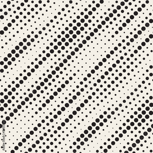Vector Seamless Black and White Diagonal Halftone Circle Lines Pattern