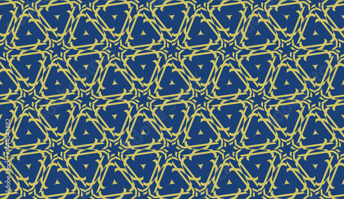 Vector seamless geometric pattern. Triangles curved line. For wallpaper, presentation background, interior design, fashion print. Blue, dark yellow color