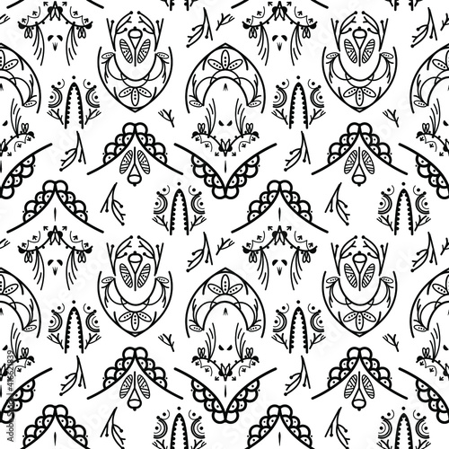 vector seamless pattern black and white abstraction, diverse artistic decorative elements