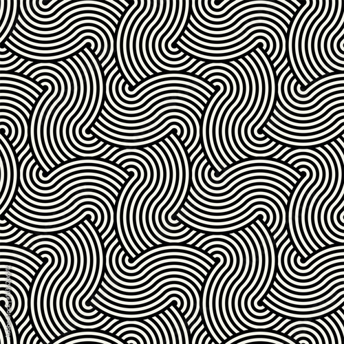 Vector seamless pattern. Geometric bold striped ornament. Stylish monochrome background. Bold repeating texture with winding ribbons.