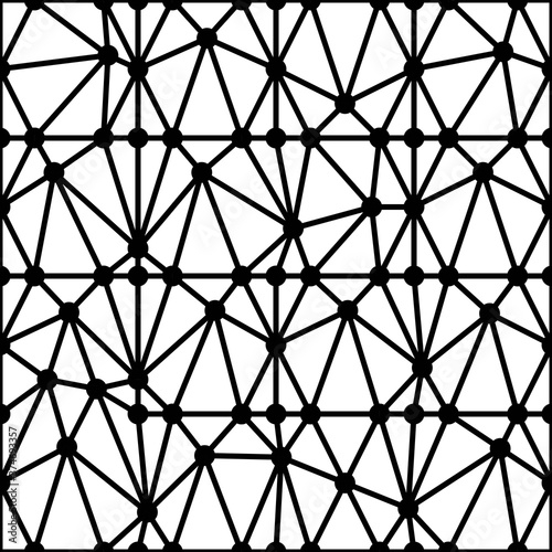 Vector seamless pattern. Irregular abstract linear grid with circles in nodes. Graphical hand drawn background. Reticulated monochrome texture