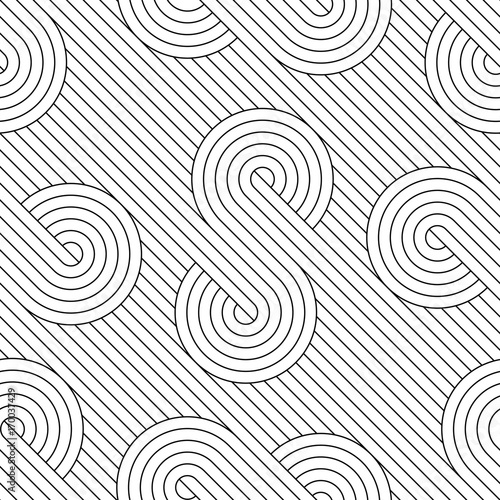 Vector seamless pattern. Modern stylish texture. Repeated geometric pattern with circles on the background of thin diagonal lines.