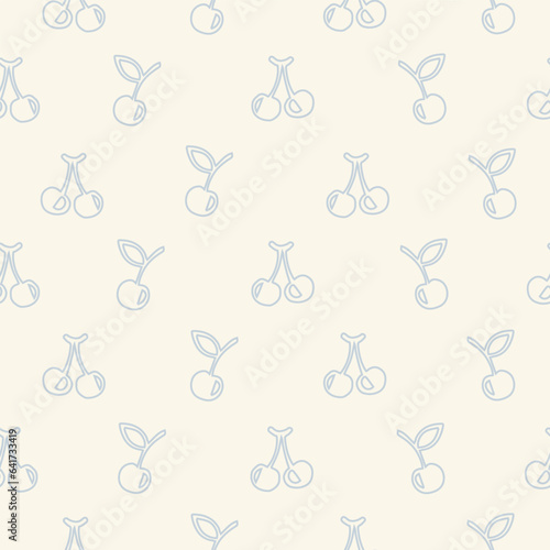 Vector seamless pattern with blue cherry berries. Perfect for card, textile, tags, invitation, printing, wrapping.