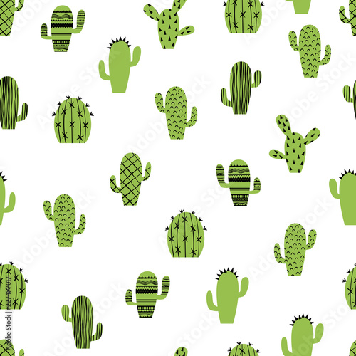 Vector seamless pattern with cute tropical cactus.