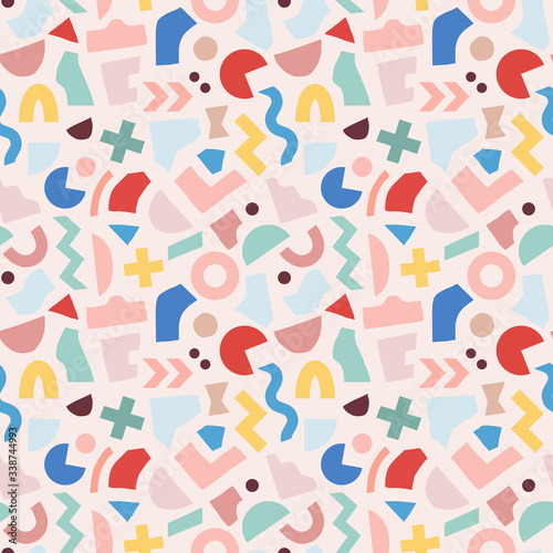 Vector seamless pattern with multicolor geometric shapes. Hipster colorful abstract background.
