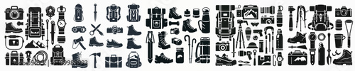 Vector set image silhouette of hiking equipment
